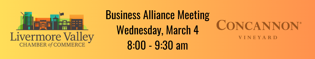 A forum for LVCC members to hear about and consider issues that affect the economic health of the Livermore Valley. Guest speakers cover topics that include housing, education, legislation and infrastructure. Updates are given by representatives from local, county, state and federal governments and organizations on issues affecting the economy.
