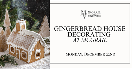 Join us for a cozy holiday afternoon of creativity and cheer at McGrail! Decorate your own pre-assembled gingerbread house, complete with all the fixings, while sipping on a glass of wine or sparkling cider. Drop in any time between 11:00am and 3:30pm to enjoy the festivities!
