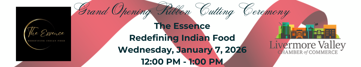 You're invited to join us at this Grand Opening Ribbon Cutting Ceremony as we welcome The Essence - Redefining Indian Food to Livermore Valley Chamber of Commerce and to the community.