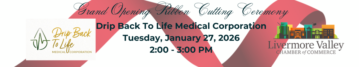 You're invited to join us at this Grand Opening Ribbon Cutting Ceremony as we welcome Drip Back To Life Medical Corporation to Livermore Valley Chamber of Commerce and to the community.